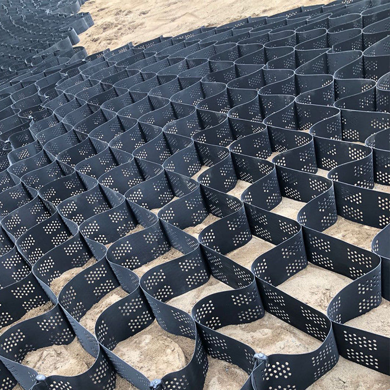 HDPE GeocGeocells ve doldurma malzemesi arasında en iyi teması sağlayan özel bir yüzey dokusuna sahiptir.Hücre duvarları, hücre cepleri arasında hidrolik bir bağlantı sağlamak ve aşırı suyun çekilmesine izin vermek için deliklidirPerforasyon, köklerin hücreler arasında büyümesi için bir yol sağlar.